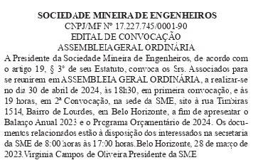 Notícias Crea-MG garante apoio a eventos programados pela SME 12/04/2024 Notícias IBRAM lança livro sobre gestão de recursos hídricos na mineração 12/04/2024 Notícias ESG não é filantropia 12/04/2024 Notícias Síntese, Resultados e Encaminhamentos sobre o evento: Pampulha em 3 Momentos 08/04/2024 Notícias 02/04/2024 02/04/2024 Notícias Março: mês da água e da mulher 27/03/2024 Notícias Governo marca primeira reunião do GT de Reciclagem de Veículos 27/03/2024 Notícias A importância do ensino profissional para o desenvolvimento do país 26/03/2024 Notícias Oito entre dez brasileiros percebem impacto da engenharia no cotidiano 26/03/2024 Notícias SME recebe título de sócio fundador do World Energy Council Brasil 26/03/2024 Page 20 of 34Prev 1 … 18 19 20 21 22 … 34 Next