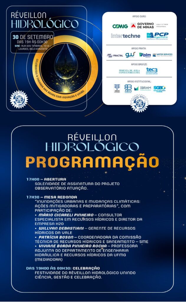- 19h00 às 00h30 – Tradicional confraternização do Réveillon Hidrológico, unindo ciência, gestão e celebração.