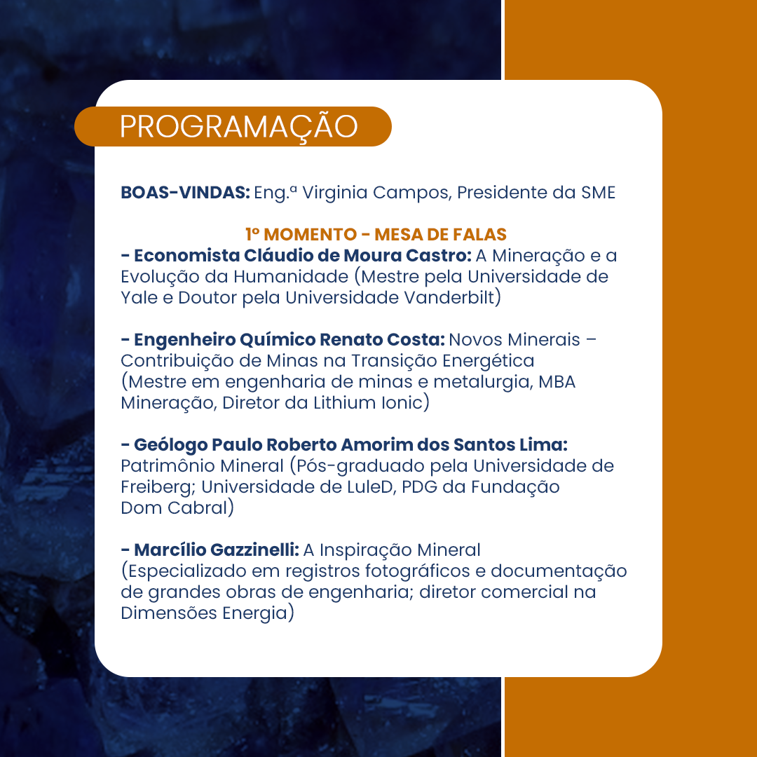 Minas Alma Mineral Categoria: Notícias 18/09/2023 Segue link para realizar sua inscrição: https://www.sympla.com.br/minas-alma-mineral__2164748 Gentileza nos ajudar na divulgação. AnteriorAnteriorSME firma parceria para qualificação de jovens da Orquestra Vortz PróximoSME terá eleições para nova diretoria no dia 17 de outubroPróximo Artigos Relacionados