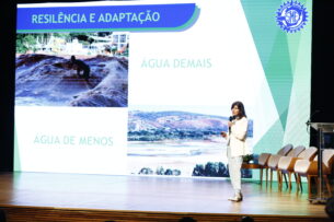A palestrante também levou ao público do seminário exemplos do impacto da escassez de água. Em 2021, Minas Gerais teve, no período seco, mais de 100 municípios em situação de calamidade pública por falta de água. Em 2024, 46 municípios mineiros recorreram o Governo Federal por emergência climática: 22 por causa da seca. “Eventos climáticos extremos causaram prejuízos de R$ 4,2 bilhões em 10 anos em Minas. As chuvas foram os eventos mais impactantes no estado. Água demais, ou de menos”.